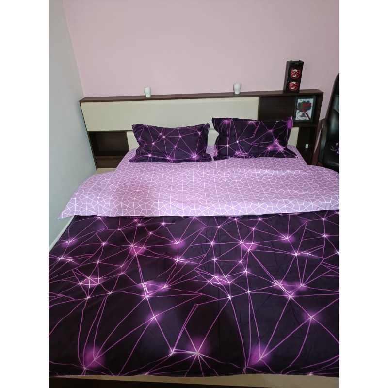 Lenjerie pat dublu, BUMBAC FINET, 6 piese, CU ELASTIC, Mov-Violet, abstract, Primavara Casa, cod produs: PTK20