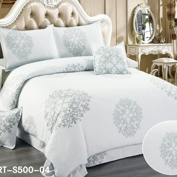 Lenjerie de Pat Dublu, 6 Piese, Tercot - Confort și Eleganță în Broderii si Culori Pastelate, Gri, East Romania, cod produs: EST-LT-S500-04