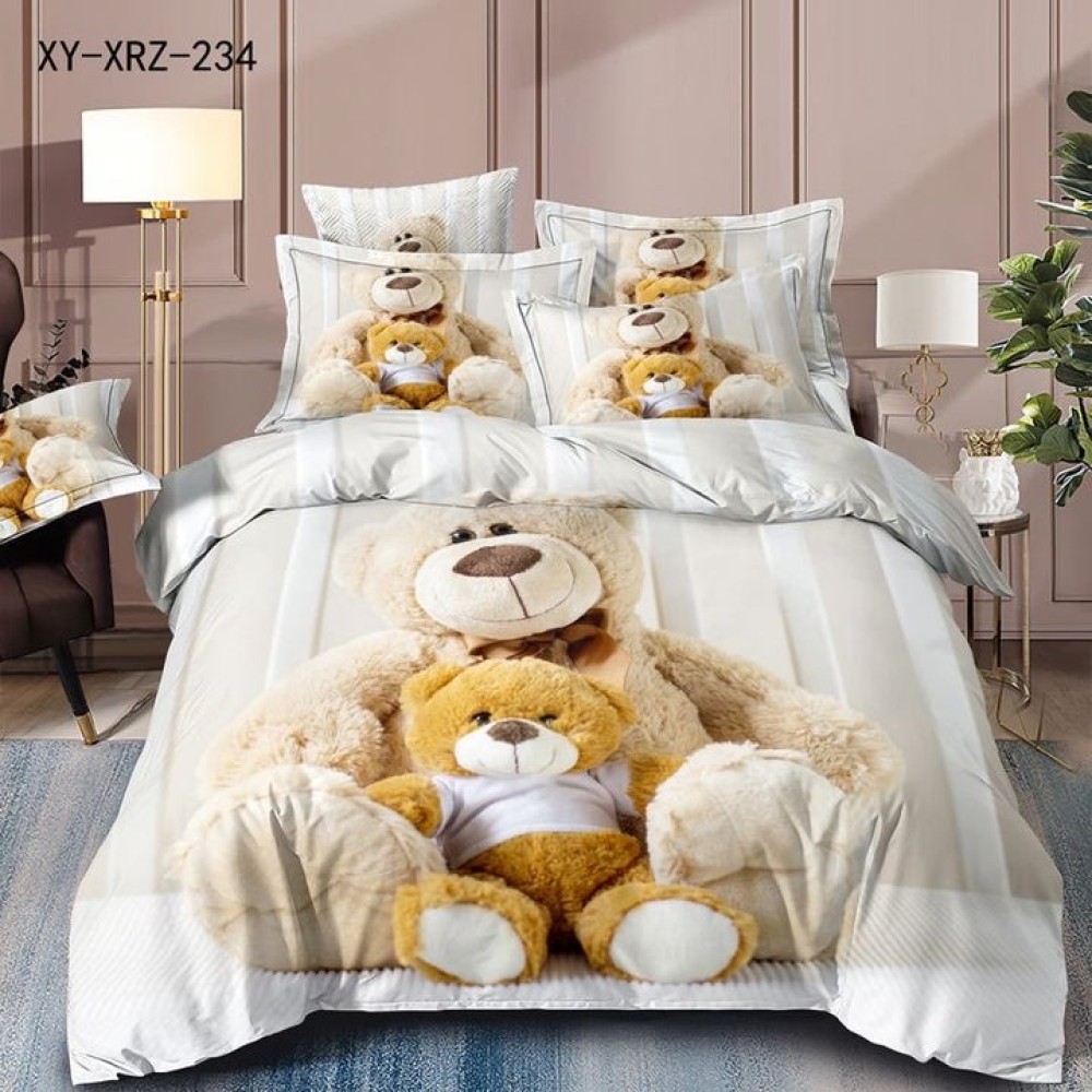 Lenjerie de Pat Dublu, Finet, 6 piese, Imprimeu 3D Digital Realist, Exact ca în Poză – Culori Durabile, Vopsea Skin-Friendly și Întreținere Ușoară, Alb, Bej, ursuleti, JOJO Home, cod produs: YAM08