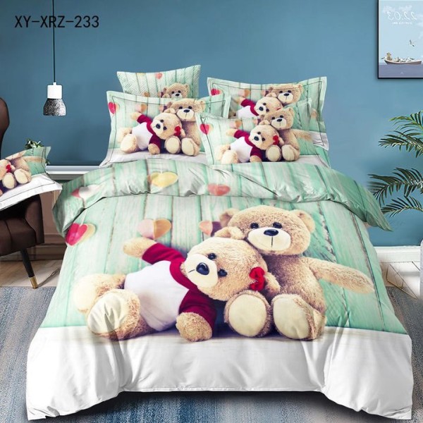 Lenjerie de Pat Dublu, Finet, 6 piese, Imprimeu 3D Digital Realist, Exact ca în Poză – Culori Durabile, Vopsea Skin-Friendly și Întreținere Ușoară, Aqua, ursuleti, JOJO Home, cod produs: YAM06