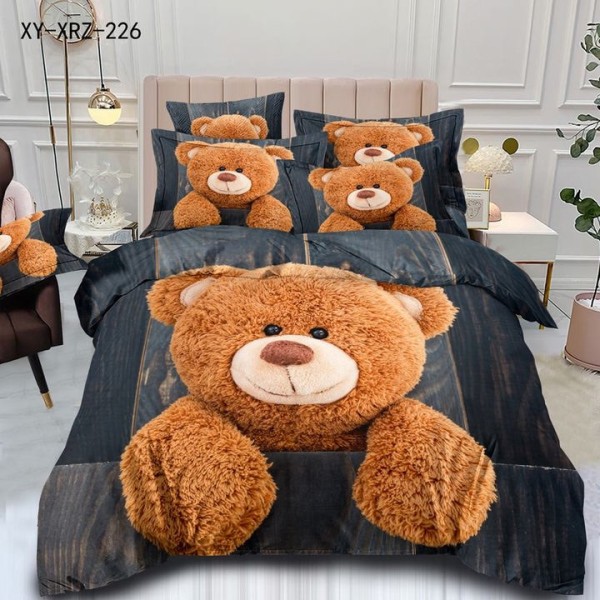 Lenjerie de Pat Dublu, Finet, 6 piese, Imprimeu 3D Digital Realist, Exact ca în Poză – Culori Durabile, Vopsea Skin-Friendly și Întreținere Ușoară, Negru, Maro, ursuleti, JOJO Home, cod produs: YAM05