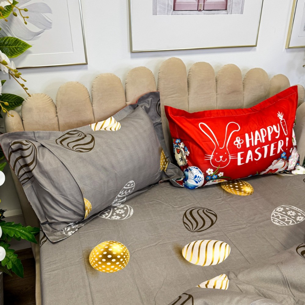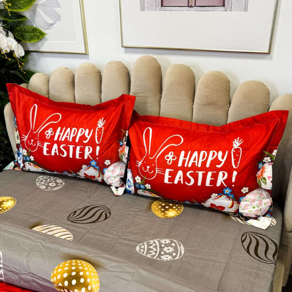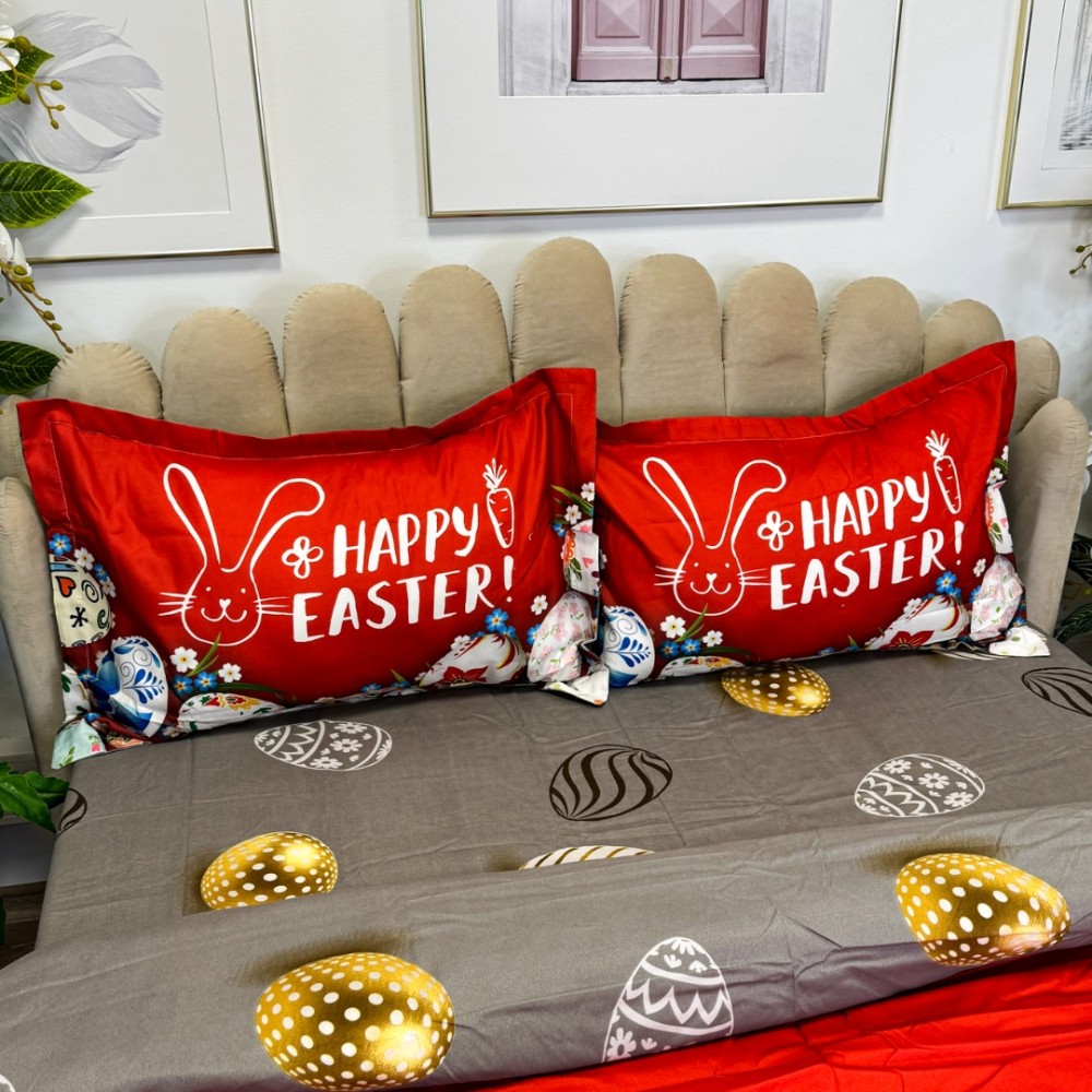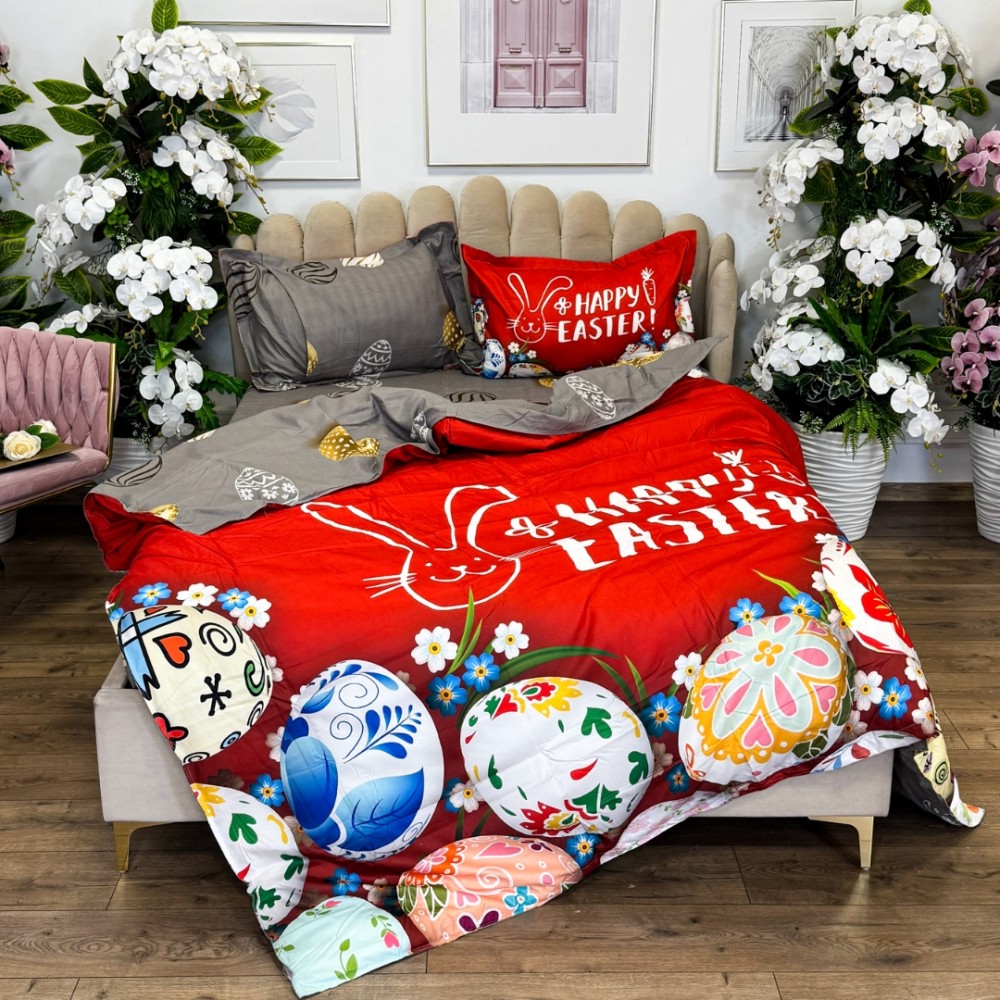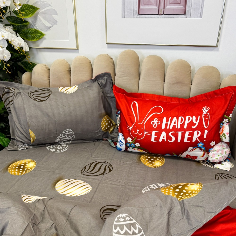 Lenjerie de Pat Dublu, Finet, Imprimeu Digital cu Oua, IDENTIC CU POZA, 4 Piese, Rosu, Super Design Pucioasa, cod produs: SDP-PF-21