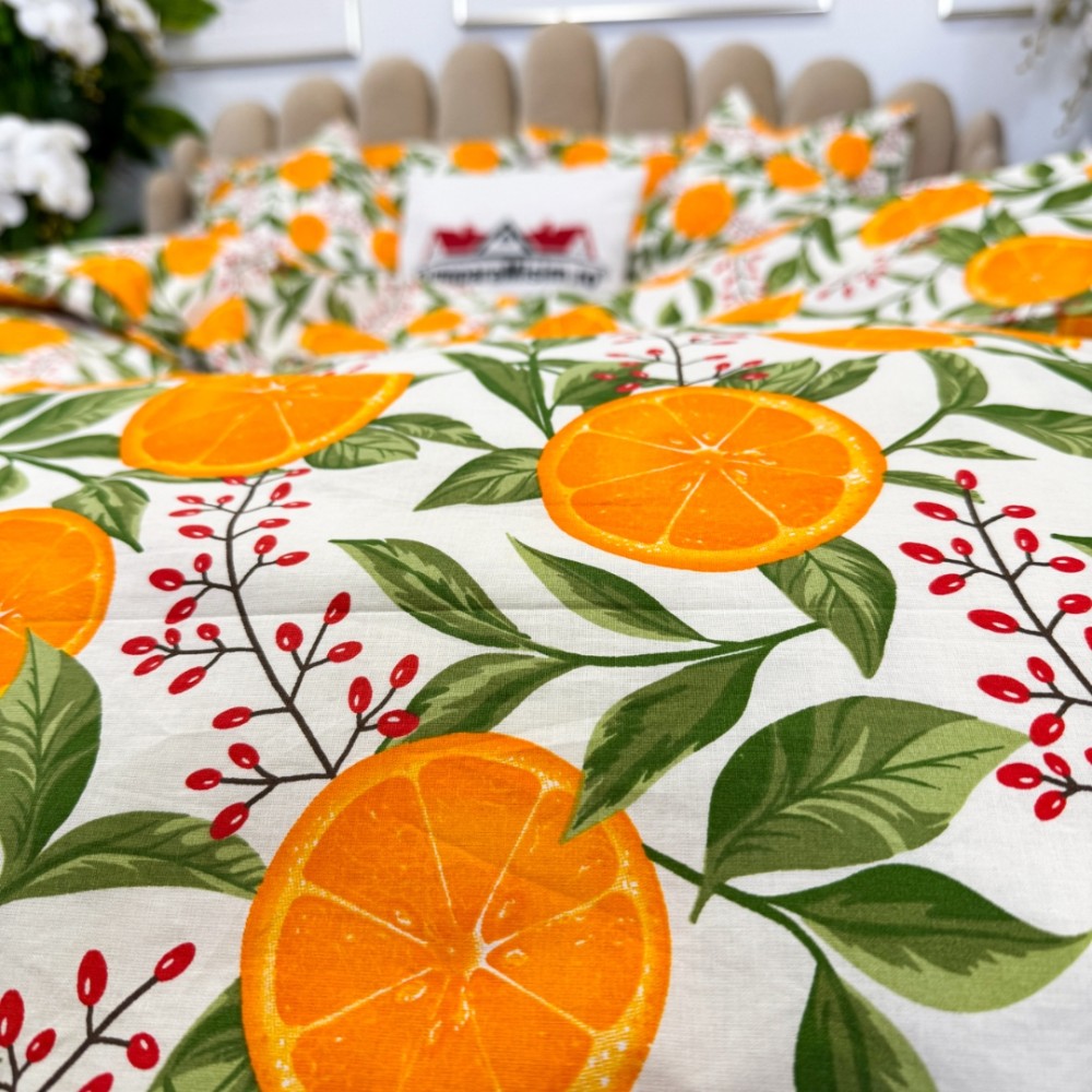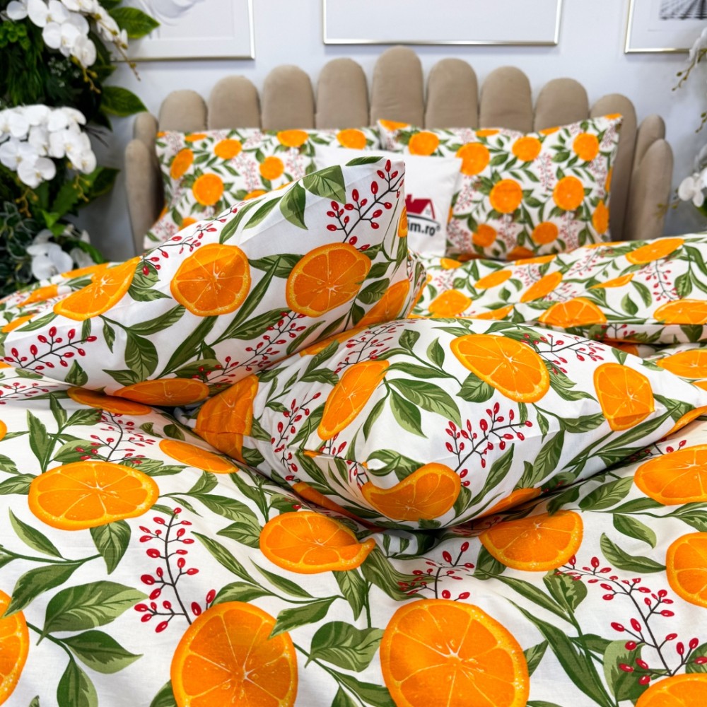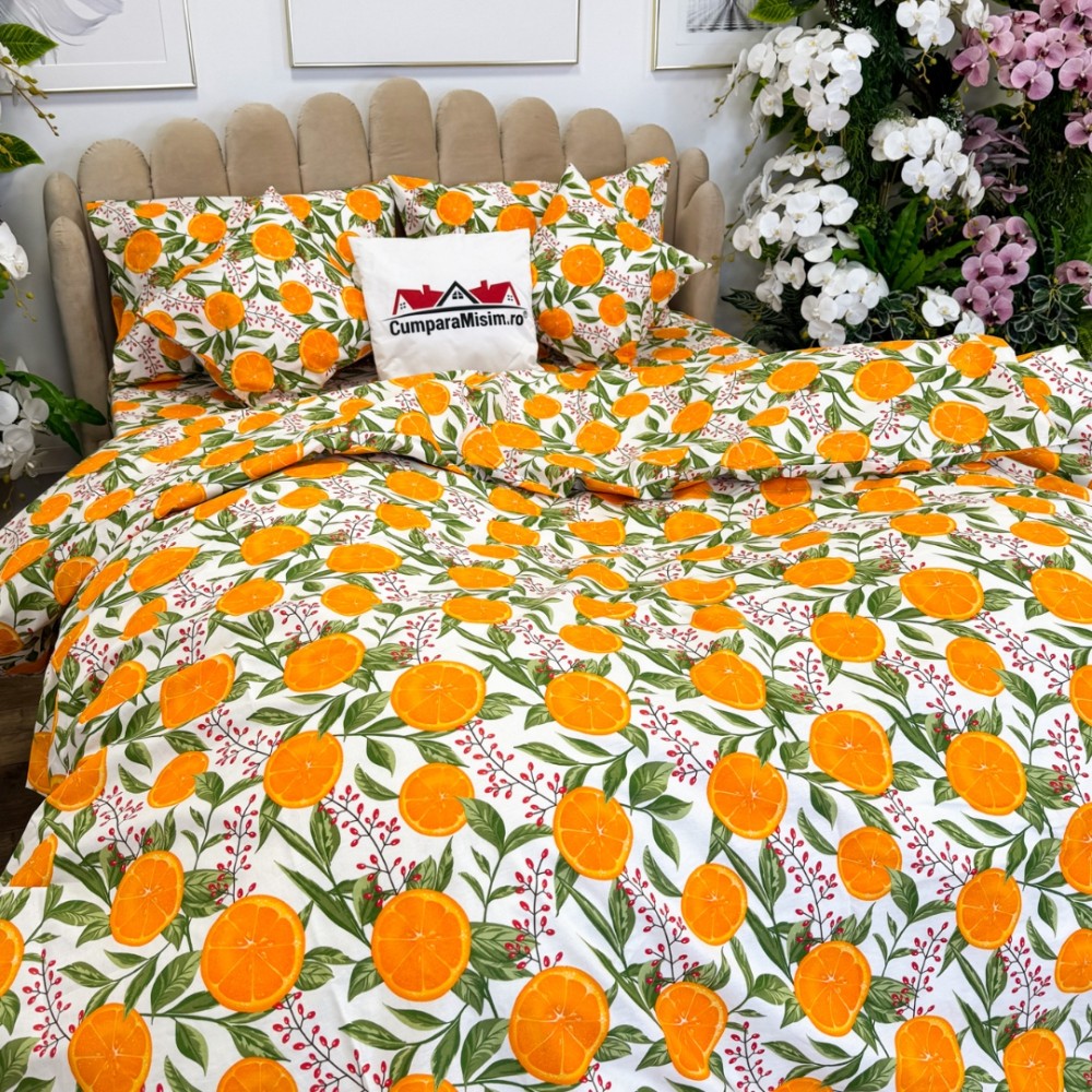 Lenjerie de Pat Dublu, Bumbac Ranforce, 6 piese, Croită cu Grija in Atelierul Cumparamisim - Lux Suprem, Rafinament Desăvârșit, Confort Regal, Alb, Portocaliu, portocale, cod produs: CMP-RF06