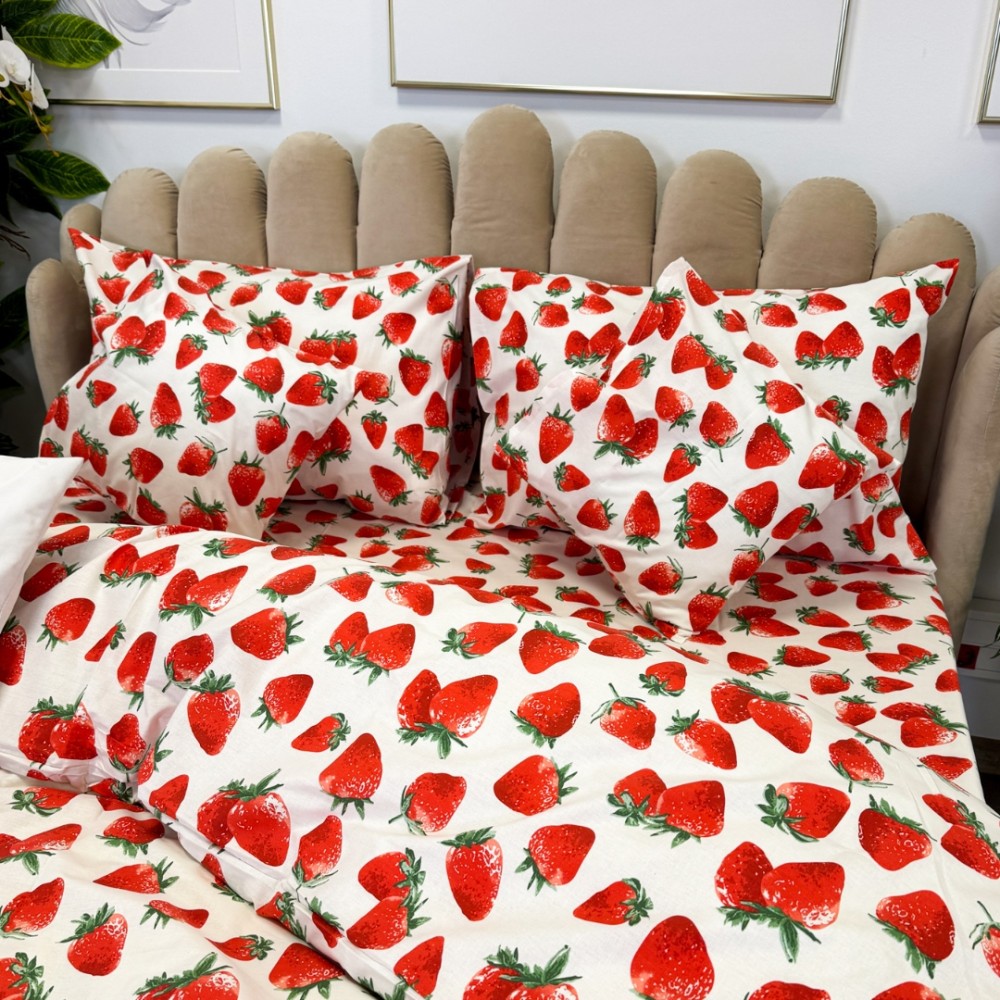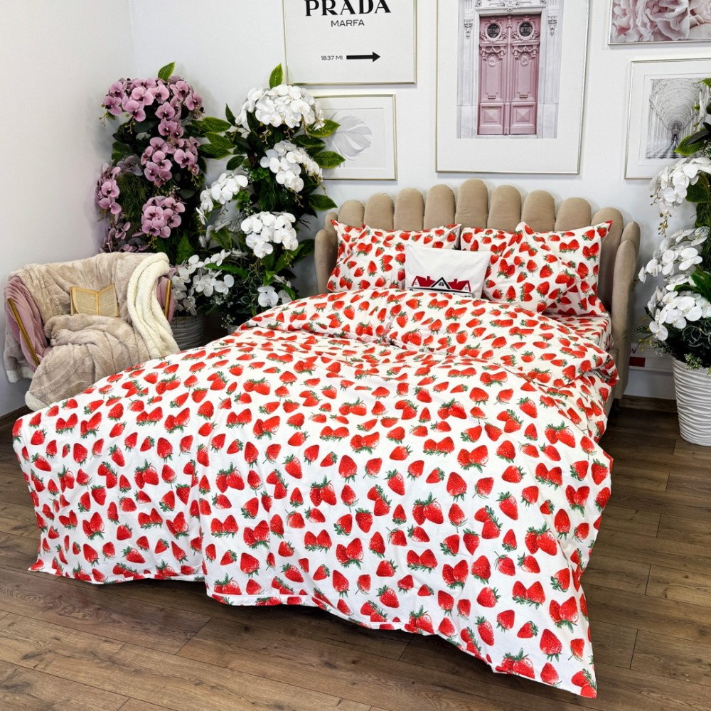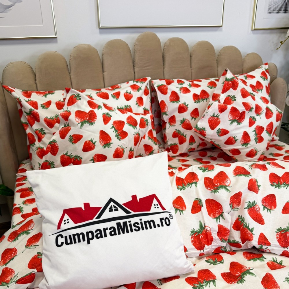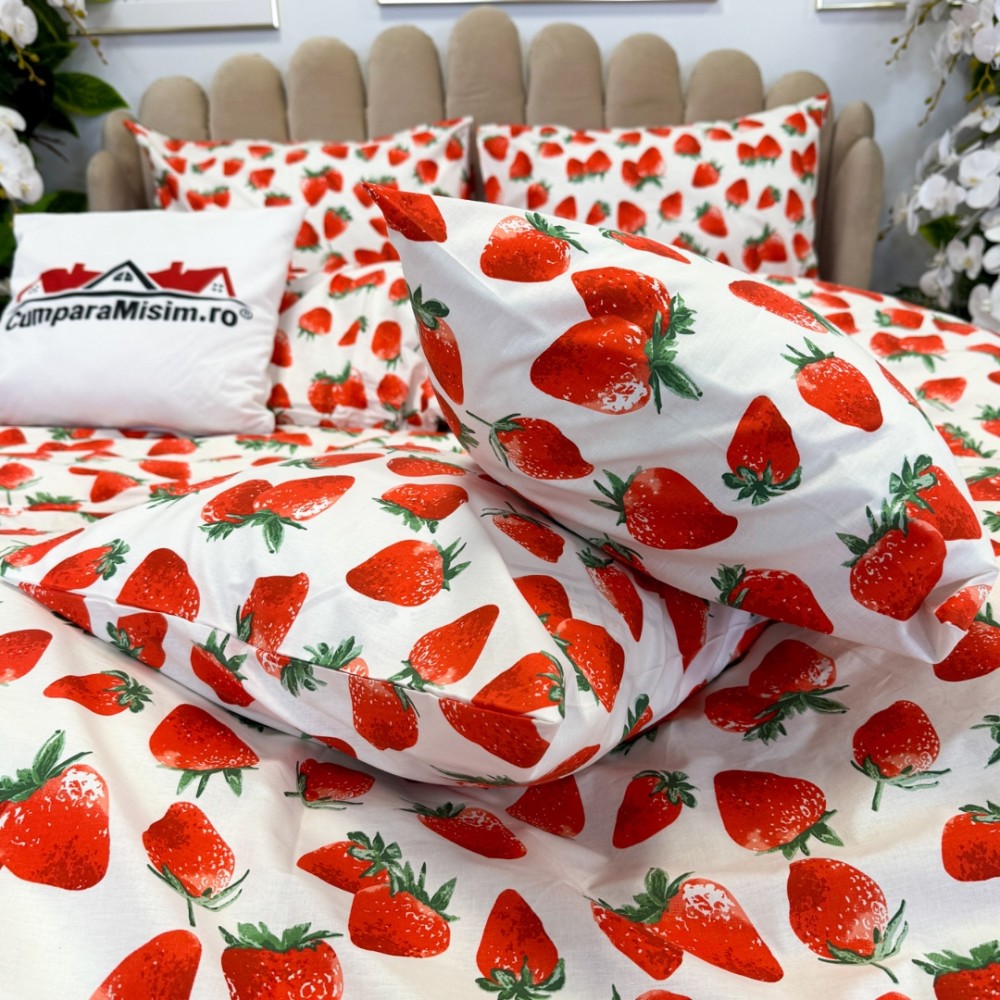 Lenjerie de Pat Dublu, Bumbac Ranforce, 6 piese, Croită cu Grija in Atelierul Cumparamisim - Lux Suprem, Rafinament Desăvârșit, Confort Regal, Alb, Rosu, căpșuni , cod produs: CMP-RF07