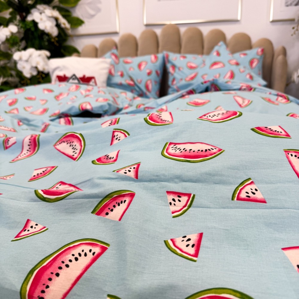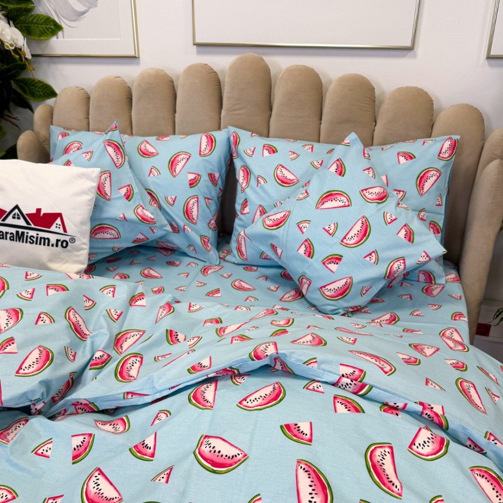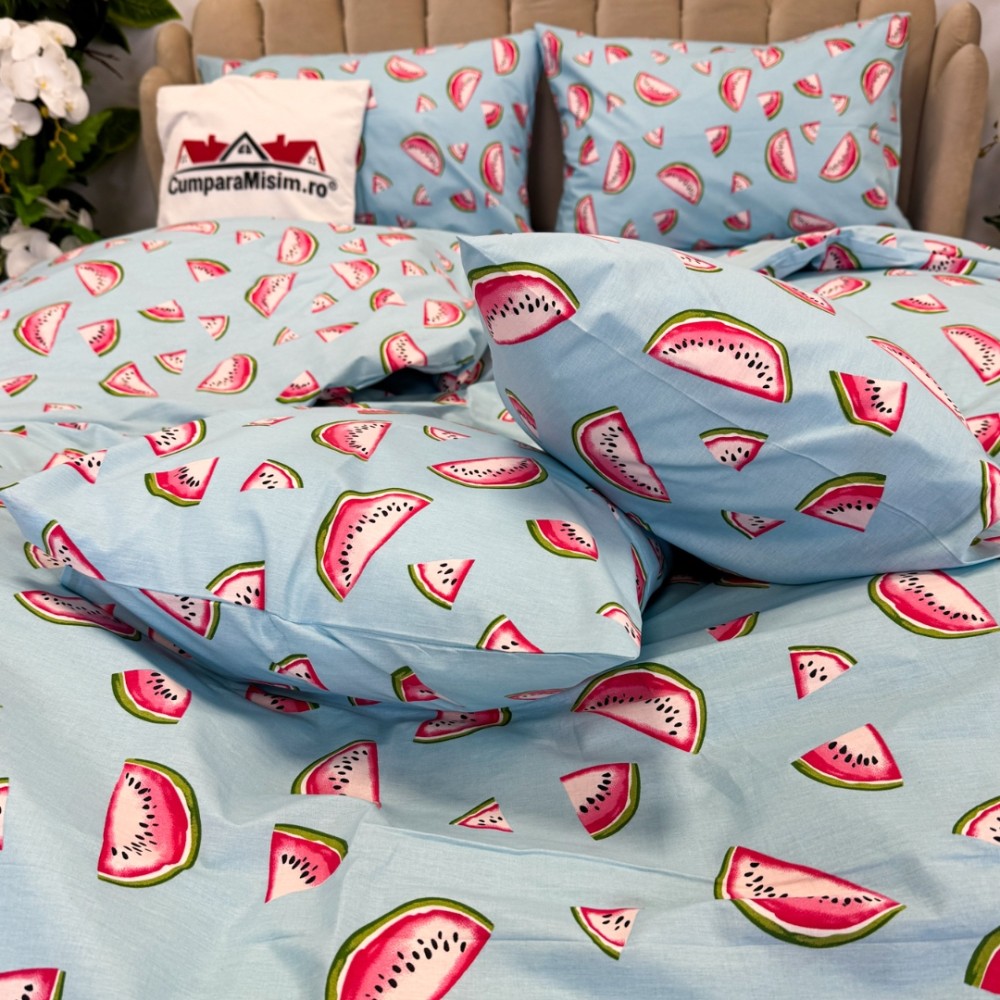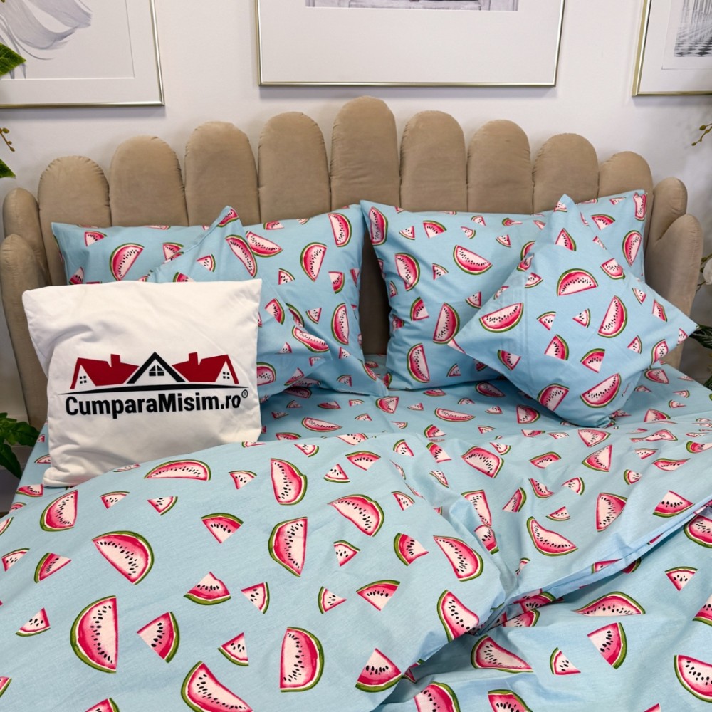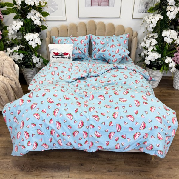 Lenjerie de Pat Dublu, Bumbac Ranforce, 6 piese, Croită cu Grija in Atelierul Cumparamisim - Lux Suprem, Rafinament Desăvârșit, Confort Regal, Bleu, Roz, pepene , cod produs: CMP-RF11
