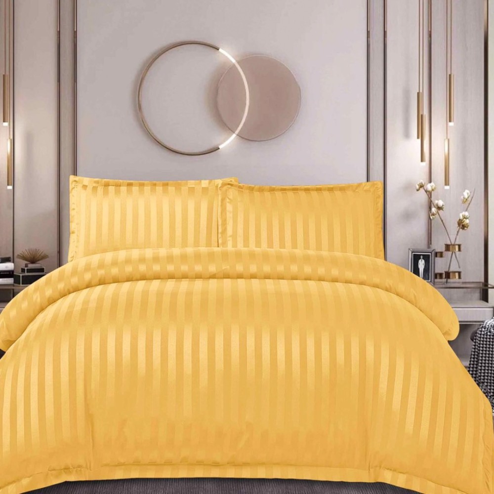 Lenjerie de Pat Dublu, HoReCa, 4 Piese din Damasc Finetat - Lux, Confort și Întreținere Ușoară, Fără Călcare, Galben, Veluxio Home, cod produs: ELN-DM13