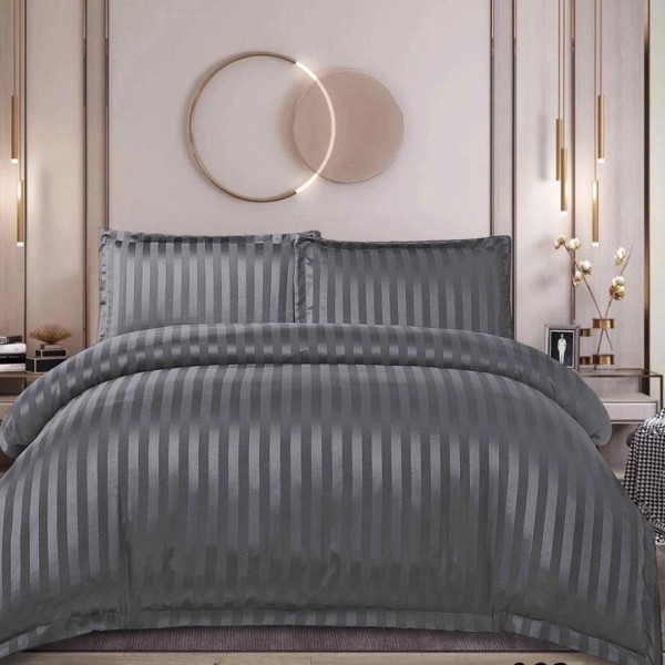 Lenjerie de Pat Dublu, HoReCa, 4 Piese din Damasc Finetat - Lux, Confort și Întreținere Ușoară, Fără Călcare, Gri inchis, Veluxio Home, cod produs: ELN-DM18