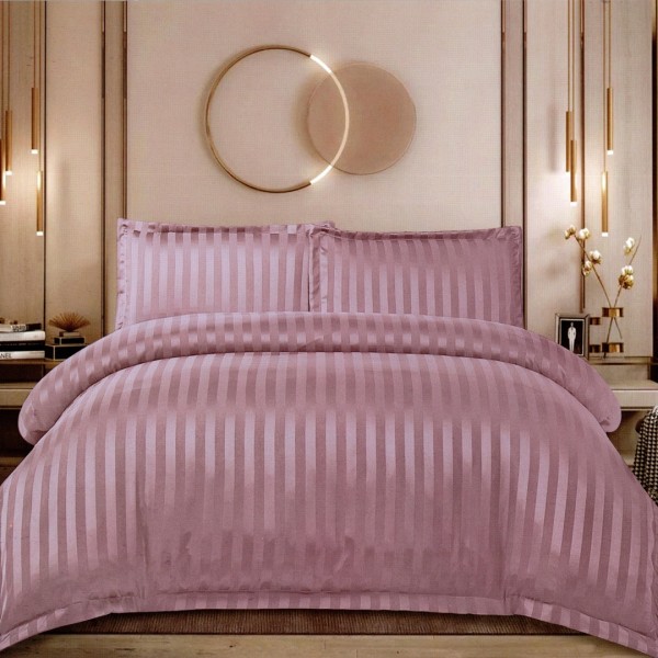 Lenjerie de Pat Dublu, HoReCa, 4 Piese din Damasc Finetat - Lux, Confort și Întreținere Ușoară, Fără Călcare, Lila, Veluxio Home, cod produs: ELN-DM22