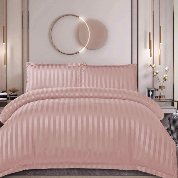 Lenjerie de Pat Dublu, HoReCa, 4 Piese din Damasc Finetat - Lux, Confort și Întreținere Ușoară, Fără Călcare, Roz pudra, Veluxio Home, cod produs: ELN-DM08