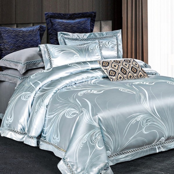 Lenjerie de Pat Dublu, Jacquard Premium Satinat, Set 6 Piese, Calitate Superioară, Luciu Elegant și Confort Desăvârșit, Bleu, cod produs: SDP-JQ03