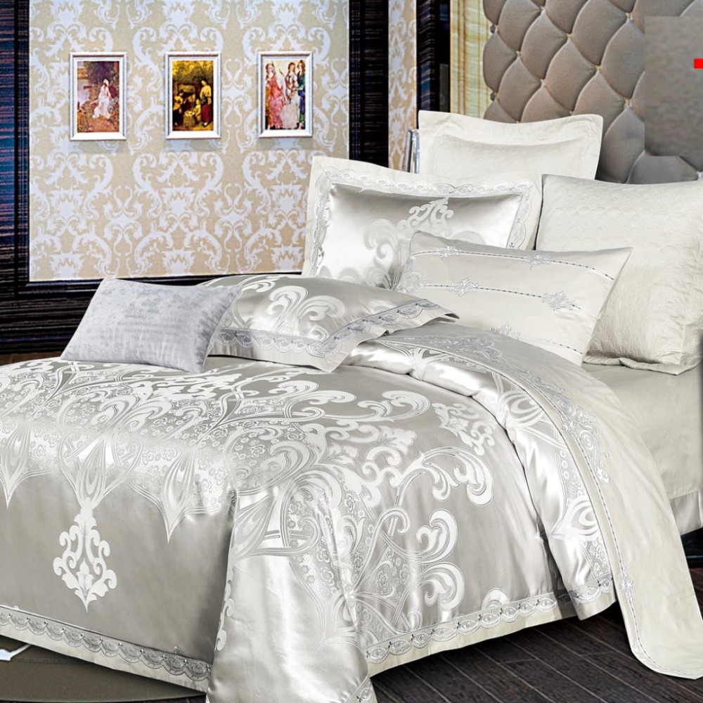 Lenjerie de Pat Dublu, Jacquard Premium Satinat, Set 6 Piese, Calitate Superioară, Luciu Elegant și Confort Desăvârșit, Gri, cod produs: SDP-JQ12