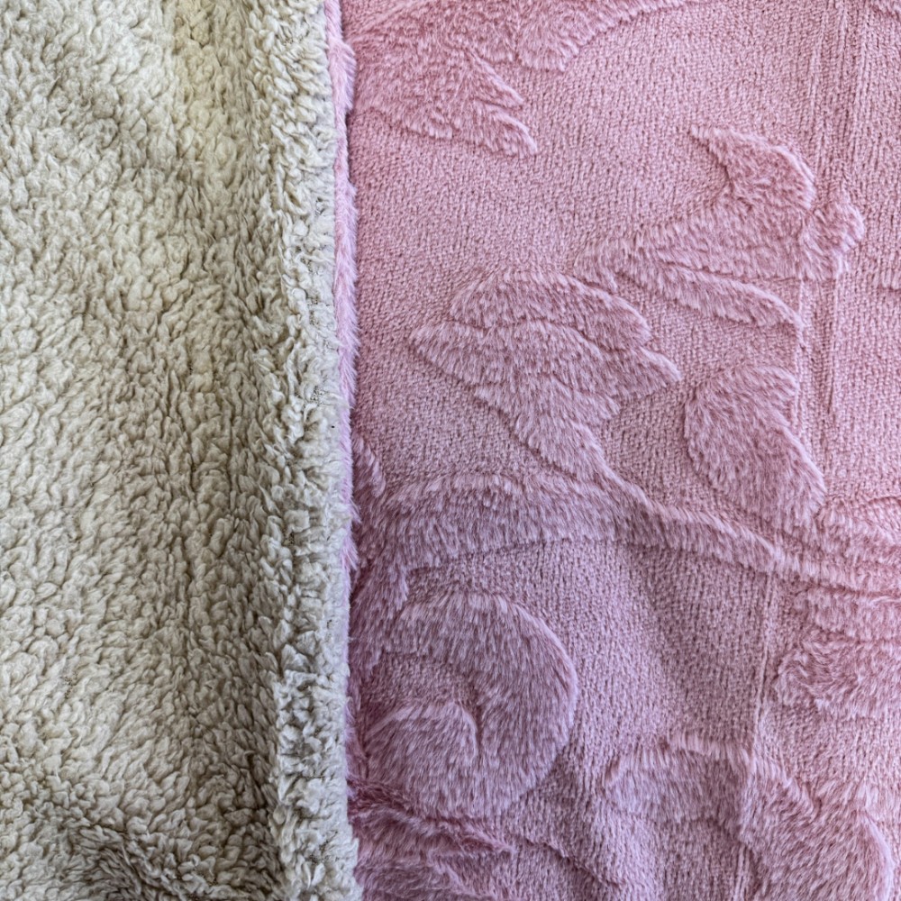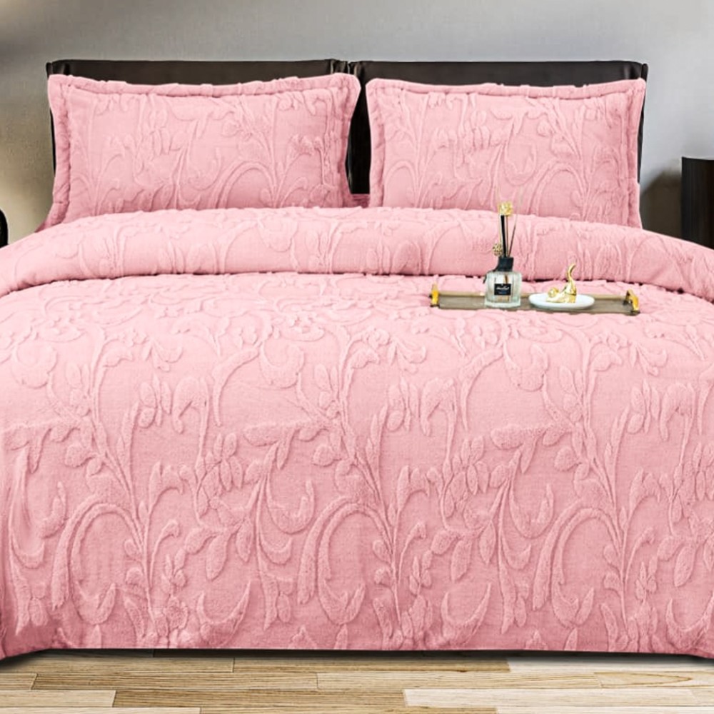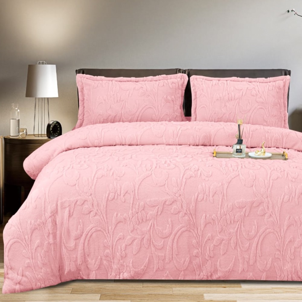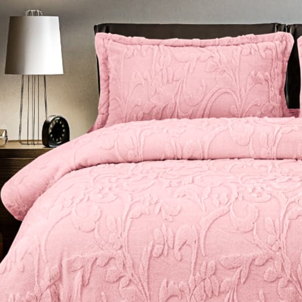 Lenjerie de pat dublu, Luxoasă și Super Pufoasă CoCoLiNo 3D, cu Blăniță Sherpa, 4 Piese, Cearșaf cu Elastic – Microfibră Plusată, Căldură și Stil pentru Dormitorul Tău, Floral print, Roz, Casa Minunata, cod produs: INS-CC03