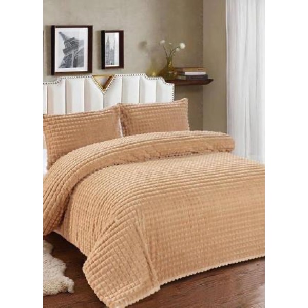 Lenjerie de Pat Dublu Premium Cocolino Teddy Bear, 4 Piese – Pluș Gofrat de Lux, Confort și Eleganță Suprema, Bej, CumparaMisim, cod produs: CSA-CC20