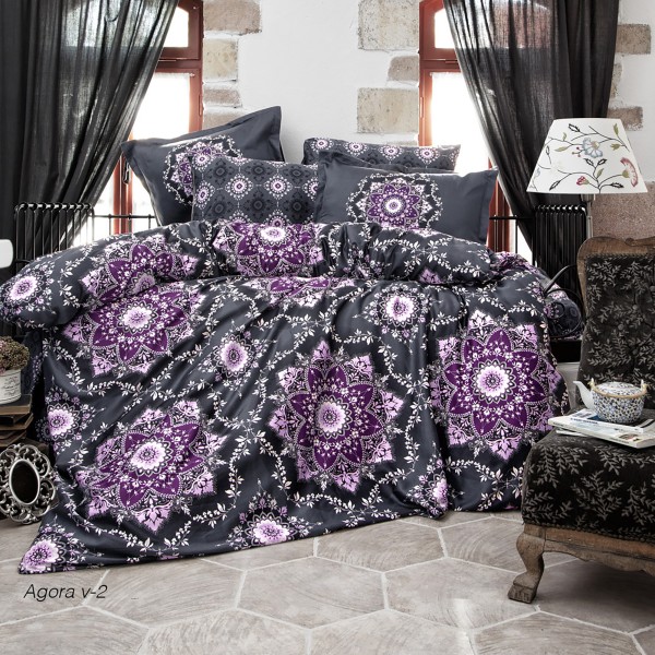 Lenjerie de pat matrimonial, 4 piese, Bumbac 100% Satin Deluxe AGORA V2, Ralex Pucioasa, cod produs: RXS4