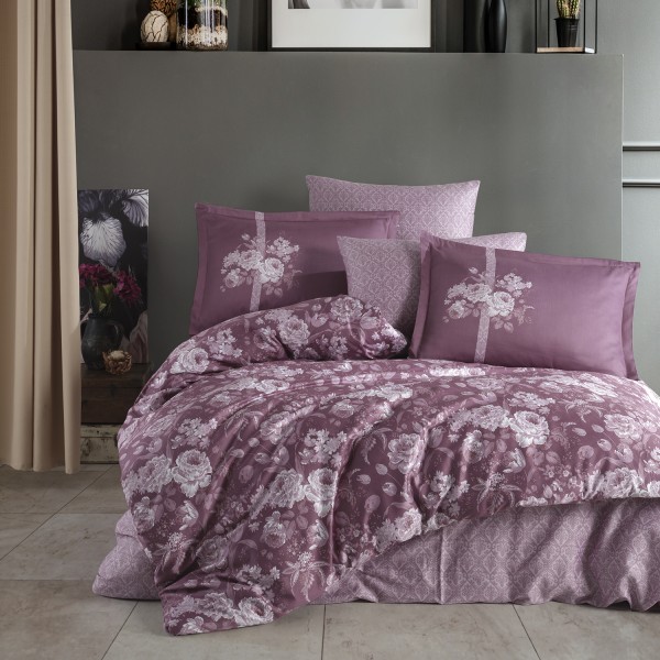 Lenjerie de pat matrimonial, 4 piese, Bumbac 100% Satin Deluxe MONICA V1, Ralex Pucioasa, cod produs: RXS36