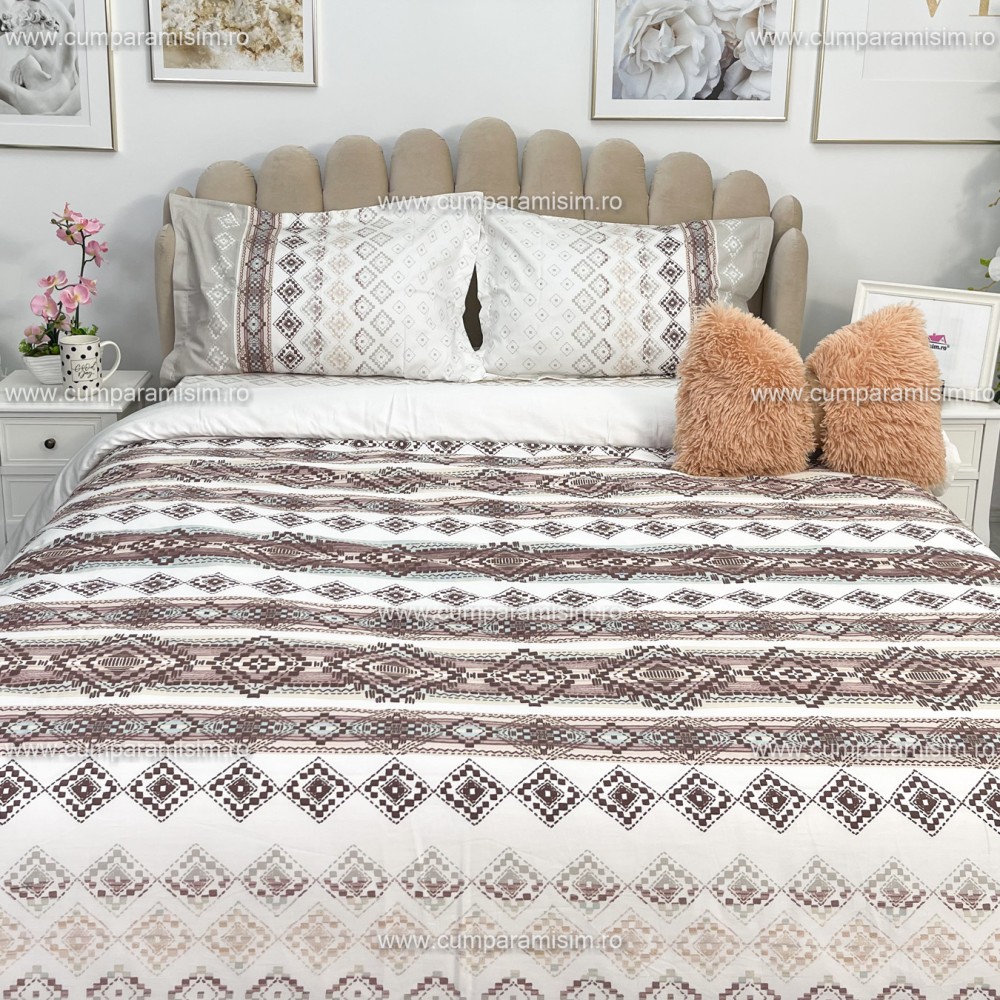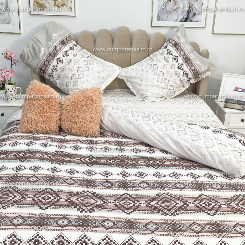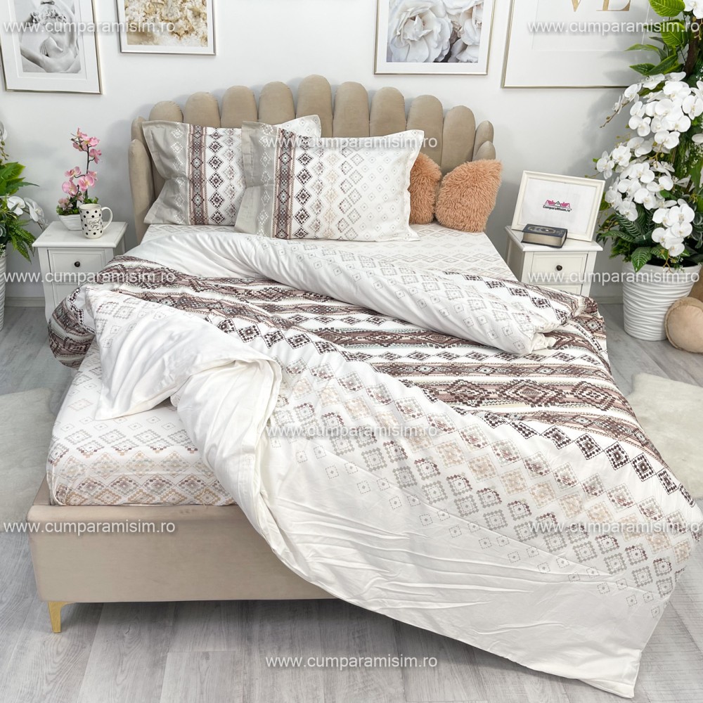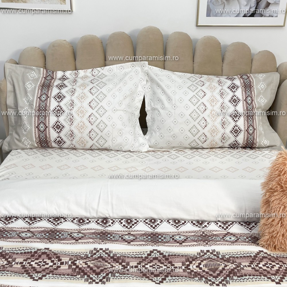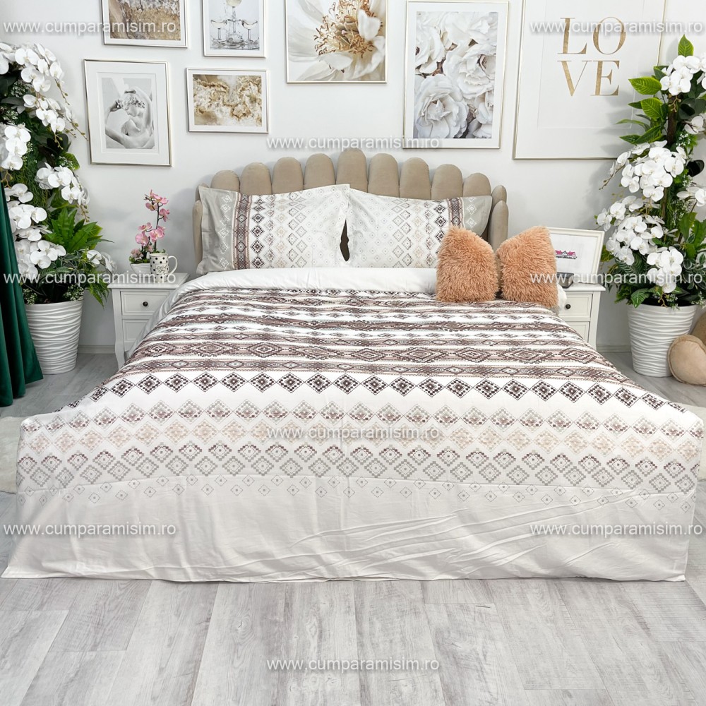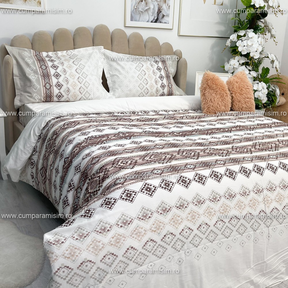 Lenjerie de pat matrimonial, 4 piese, Bumbac 100% Satin Deluxe RUMBA V1, Ralex Pucioasa, cod produs: RXS54