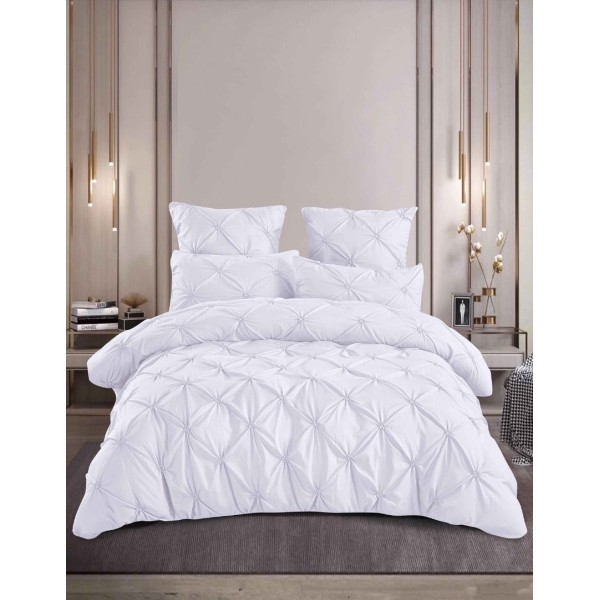 Lenjerie de Pat Premium din Finet cu Pliuri Brodate, 6 Piese, Nesifonabilă și Durabilă, Alb, Veluxio Home, cod produs: ELN-PB09