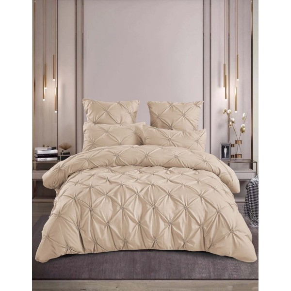 Lenjerie de Pat Premium din Finet cu Pliuri Brodate, 6 Piese, Nesifonabilă și Durabilă, Bej, Veluxio Home, cod produs: ELN-PB12