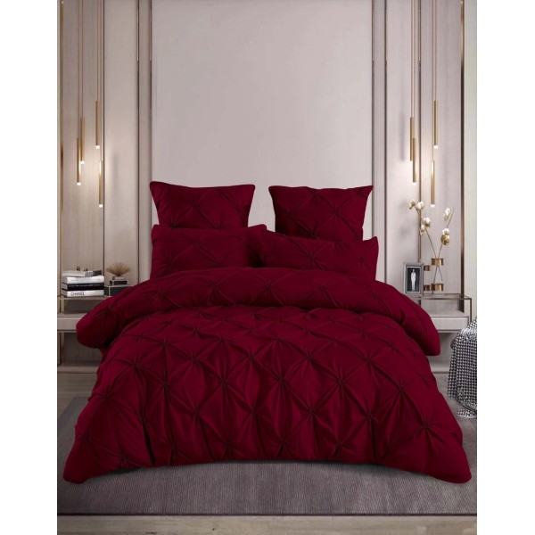 Lenjerie de Pat Premium din Finet cu Pliuri Brodate, 6 Piese, Nesifonabilă și Durabilă, Grena, Veluxio Home, cod produs: ELN-PB10