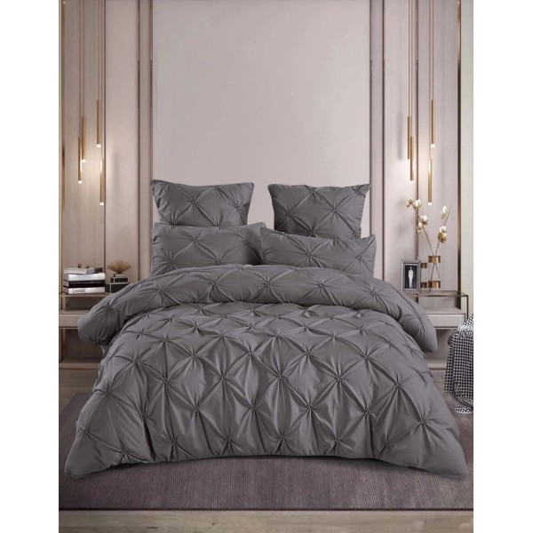 Lenjerie de Pat Premium din Finet cu Pliuri Brodate, 6 Piese, Nesifonabilă și Durabilă, Gri inchis, Veluxio Home, cod produs: ELN-PB03