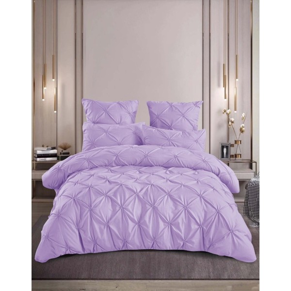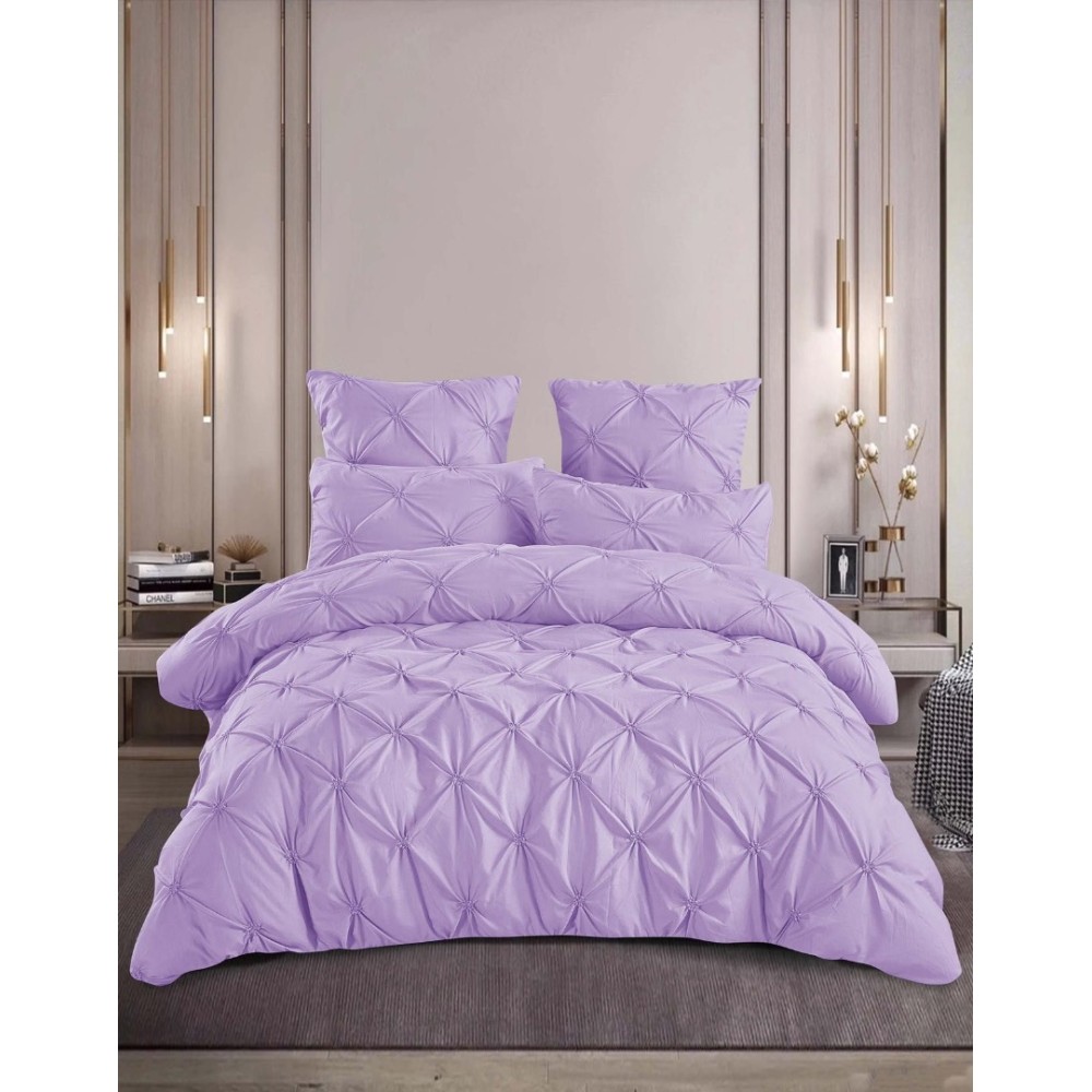 Lenjerie de Pat Premium din Finet cu Pliuri Brodate, 6 Piese, Nesifonabilă și Durabilă, Lila Liliac, Veluxio Home, cod produs: ELN-PB11