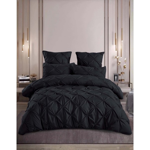 Lenjerie de Pat Premium din Finet cu Pliuri Brodate, 6 Piese, Nesifonabilă și Durabilă, Negru, Veluxio Home, cod produs: ELN-PB04