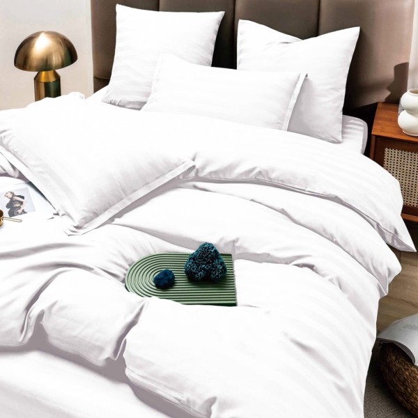Îmbrățișează eleganța și confortul fiecărei nopți cu setul nostru de lenjerie din damasc cu dungă lată de 3 cm. Adaugă în coș astăzi și transformă-ți dormitorul într-o oază de relaxare și stil!