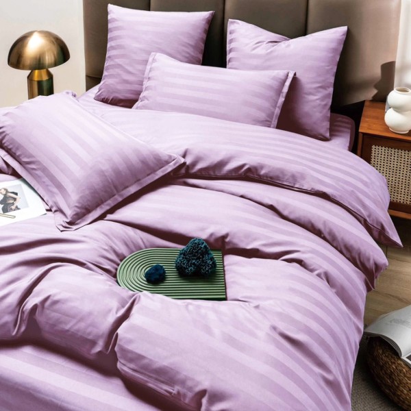 Lenjerie HoReCa DeLuxe, pat dublu, Damasc cu Dunga latã de 3cm, 6 piese, Lila, JOJO Home, cod produs: DKN34