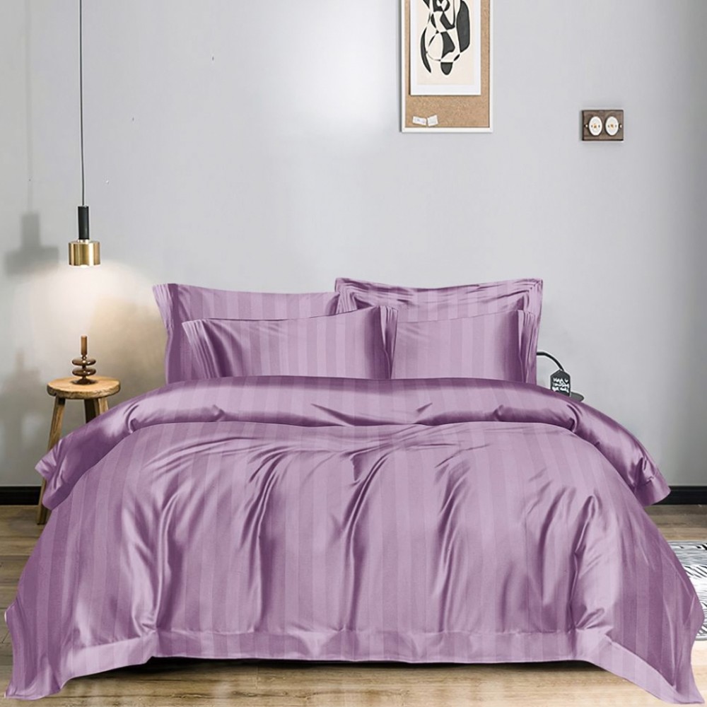 Lenjerie HoReCa DeLuxe, pat dublu, Damasc cu Dunga latã de 3cm, 6 piese, Mov Lila, JOJO Home, cod produs: DKN10