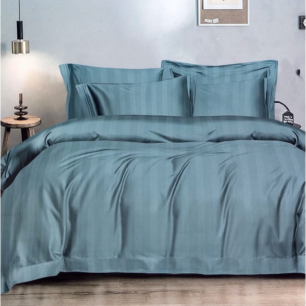 Lenjerie HoReCa DeLuxe, pat dublu, Damasc cu Dunga latã de 3cm, 6 piese, Turquoise, JOJO Home, cod produs: DKN29