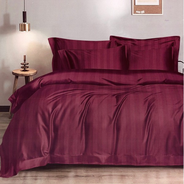 Lenjerie HoReCa DeLuxe, pat dublu, Damasc cu Dunga latã de 3cm, 6 piese, Visiniu, JOJO Home, cod produs: DKN31