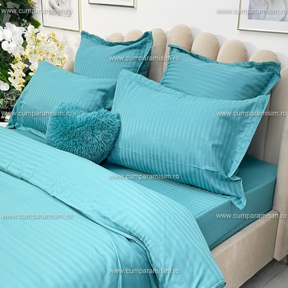 Lenjerie HoReCa, pat dublu, Damasc Finetat Deluxe, 6 piese, Jojo Home, Bleu Aqua, cod produs: JOD214