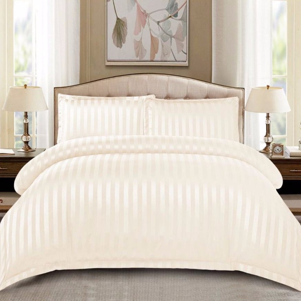 Lenjerie HoReCa, pat dublu, Damasc Finetat Deluxe cu Elastic, 4 piese, Ivoire, Primavara Casa, cod produs: PRM-AT-77