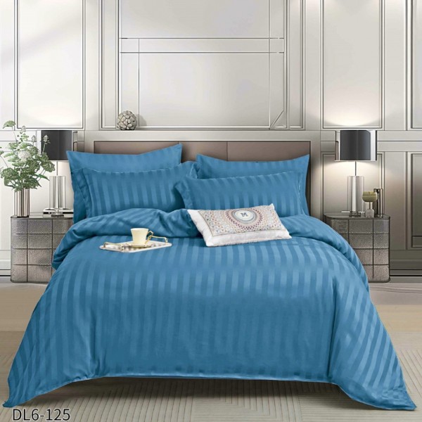 Lenjerie HoReCa, pat dublu, Damasc Finetat Deluxe cu Elastic, 6 piese, Albastru, Primavara Casa, cod produs: PRM-DL6-125