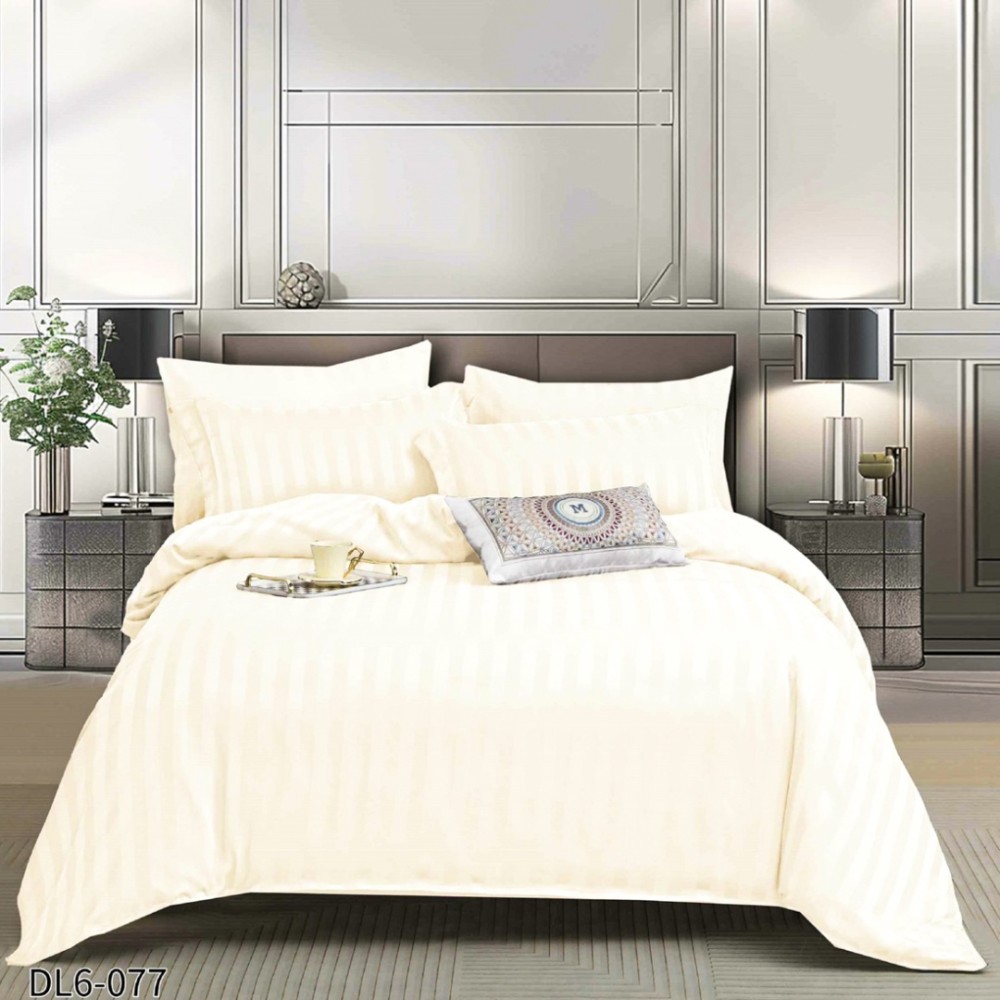 Lenjerie HoReCa, pat dublu, Damasc Finetat Deluxe cu Elastic, 6 piese, Ivoire, Primavara Casa, cod produs: PRM-DL6-077