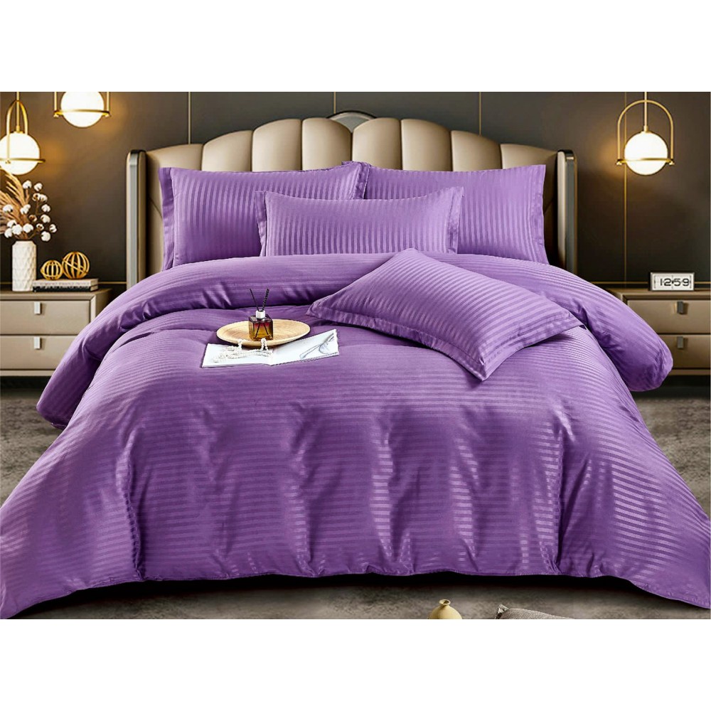 Lenjerie HoReCa, pat dublu, Damasc Finetat Deluxe cu Elastic, 6 piese, Jojo Home, Mov, cod produs: JOD104
