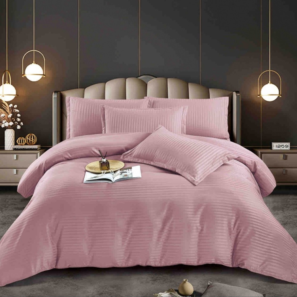 Lenjerie HoReCa, pat dublu, Damasc Finetat Deluxe cu Elastic, 6 piese, Jojo Home, Roz pudra, cod produs: JOD119