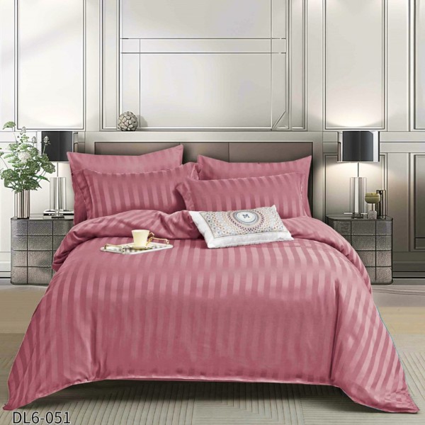 Fabricată din damasc finetat, cu o densitate de 145 TC și o grosime de 130 gr/m², lenjeria impresionează prin durabilitate și un aspect luxos. Tesătura lineară, cu dungi discrete de 1 cm, oferă o notă subtilă de eleganță.