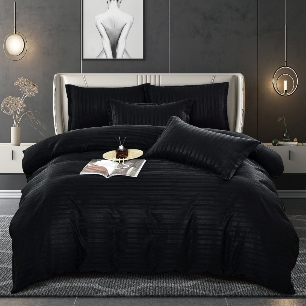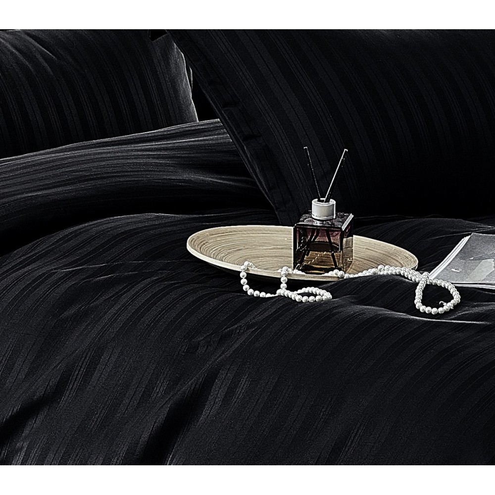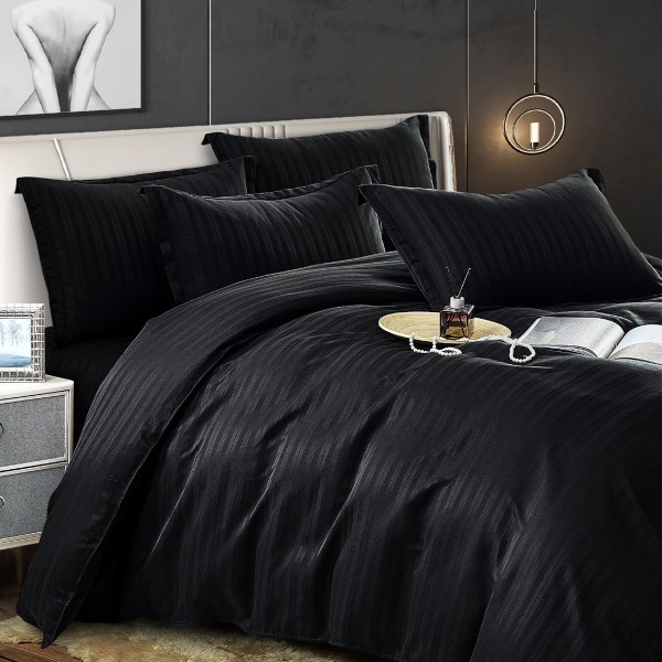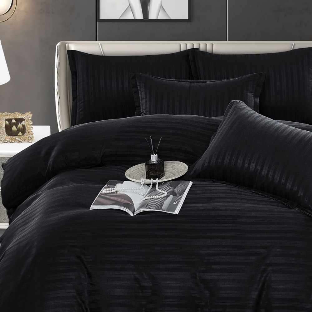 Lenjerie HoReCa, pat dublu, Damasc Finetat Satinat, 6 piese, Jojo Home, Negru, cod produs: JOD408