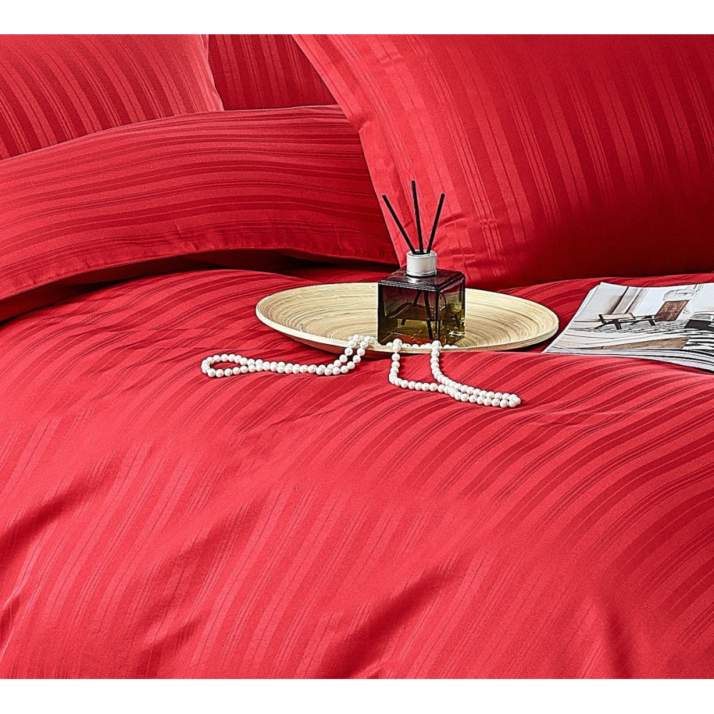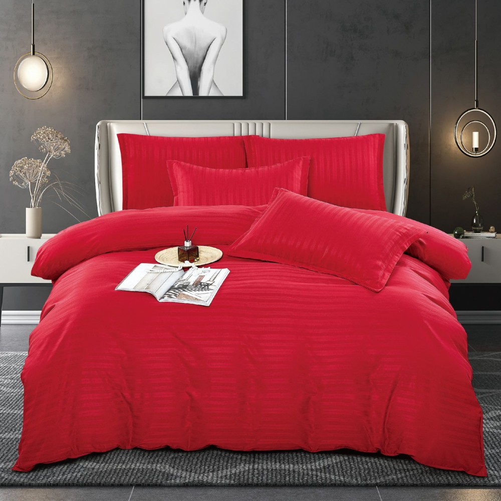 Lenjerie HoReCa, pat dublu, Damasc Finetat Satinat, 6 piese, Jojo Home, Rosu, cod produs: JOD403