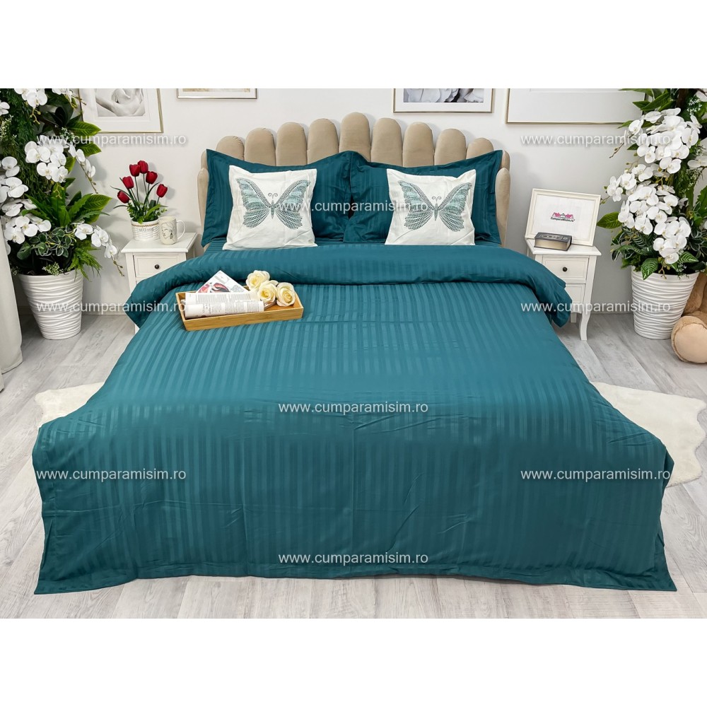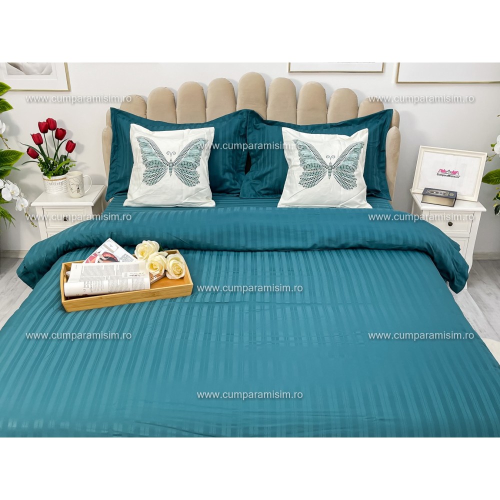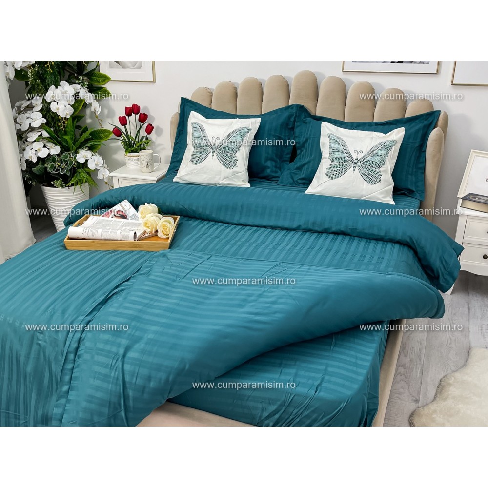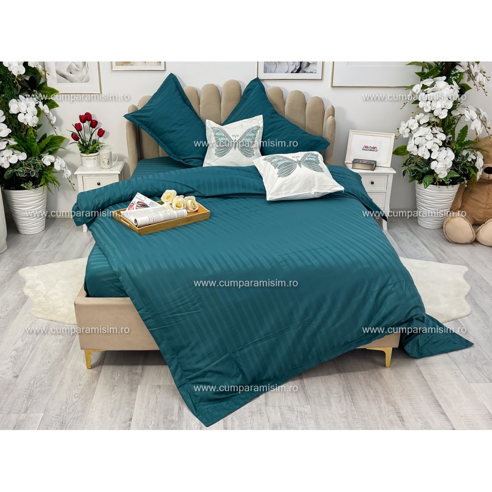 Lenjerie HoReCa, pat dublu, Damasc Satinat Deluxe cu Elastic, 6 piese, IDENTICA CU POZA, Turquoise, Primavara Casa, cod produs: PRD208