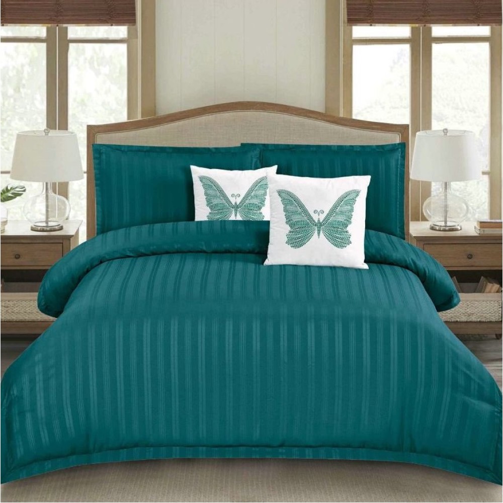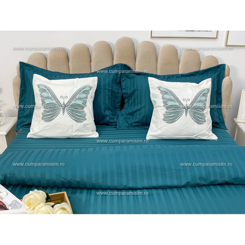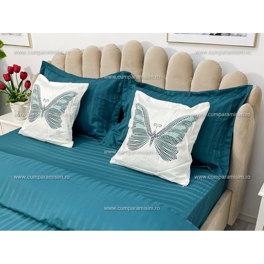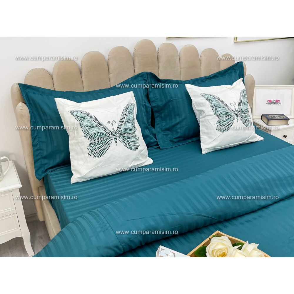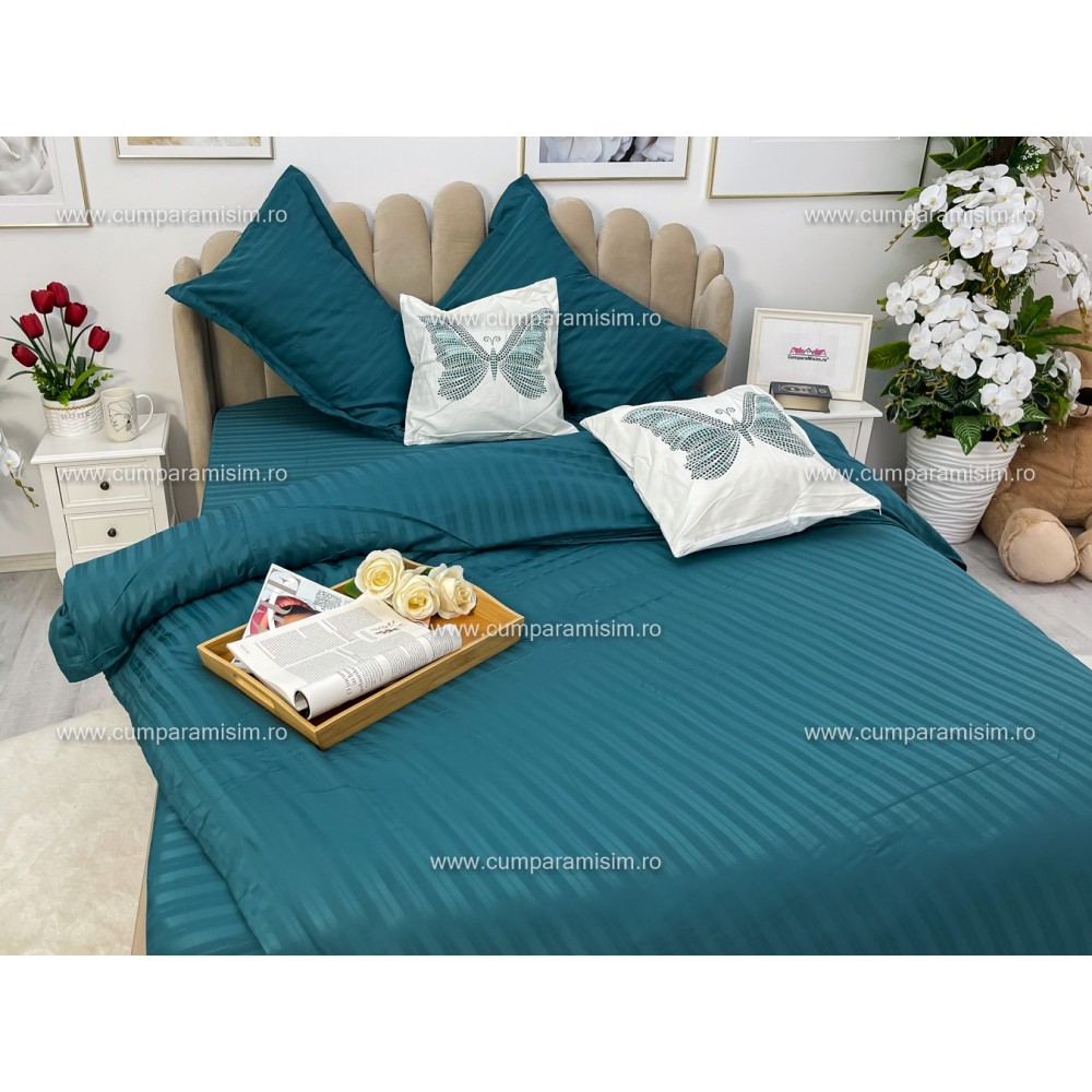 Lenjerie HoReCa, pat dublu, Damasc Satinat Deluxe cu Elastic, 6 piese, IDENTICA CU POZA, Turquoise, Primavara Casa, cod produs: PRD208