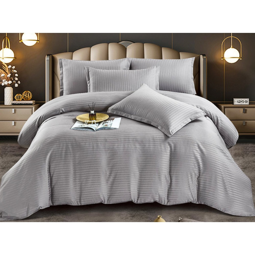 Lenjerie HoReCa, pat single, Damasc Finetat Deluxe, 4 piese, Jojo Home, Gri deschis, cod produs: JOD307