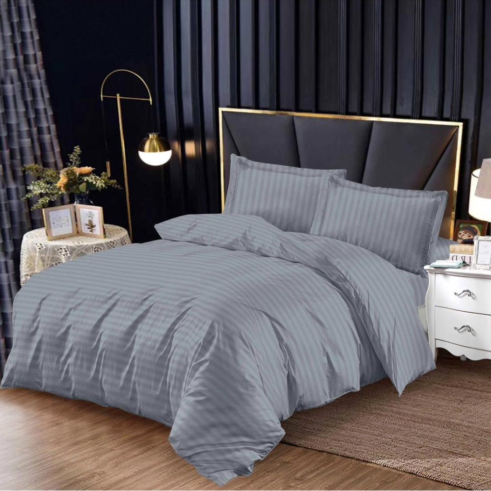 Lenjerie HoReCa, pat single, Damasc Finetat Deluxe cu Elastic, 4 piese, Gri, Johny Home Pucioasa, cod produs: SPR-G2-03