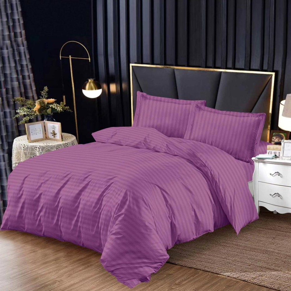 Lenjerie HoReCa, pat single, Damasc Finetat Deluxe cu Elastic, 4 piese, Mov, Johny Home Pucioasa, cod produs: SPR-G2-10