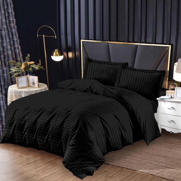 Lenjerie HoReCa, pat single, Damasc Finetat Deluxe cu Elastic, 4 piese, Negru, Johny Home Pucioasa, cod produs: SPR-G2-12