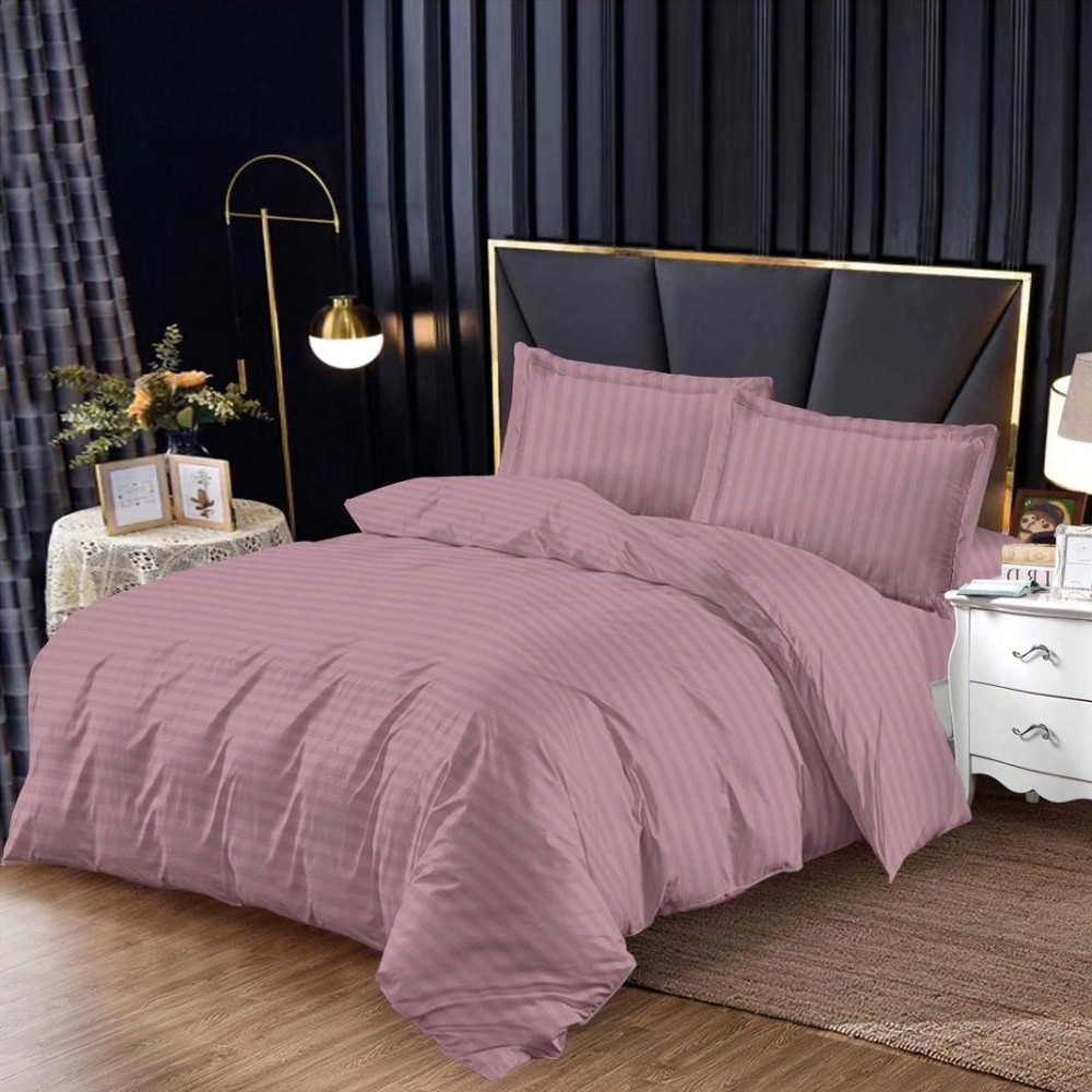Lenjerie de pat single din damasc finetat, linear (tesatura din fabrica, ci nu imprimata, cu dunga de 1 cm grosime), confectionata din bumbac 70% + 30% poliester, cu 4 piese, folosita cel mai mult in regimul hotelier, datorita simplitatii si calitatii extraordinare. Materialul are un aspect usor lucios pentru o nota de eleganta si rafinament, datorita tesaturii speciale. Damascul este recunoscut pentru rezistenta sa in timp la nenumarate spalari, nemodificandu-si aspectul.