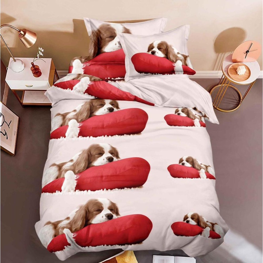 Lenjerie pat 1 PERSOANA, 3 piese, IMPRIMEU 3D Multiplicat, Microfibra, Rosu, catei, Johny Home Pucioasa, cod produs: SPR-BG-07