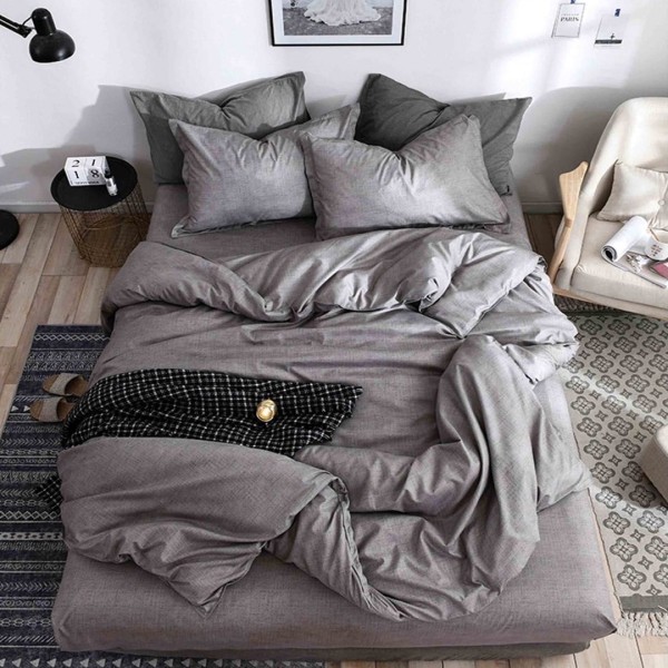 Lenjerie pat 1 PERSOANA, 4 piese, cu ELASTIC, Gri, Johny Home Pucioasa, cod produs: SPR-YE-15