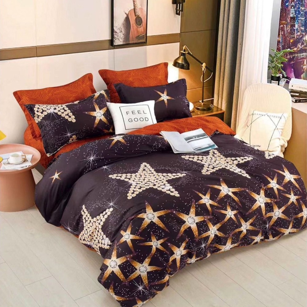 Lenjerie pat 1 PERSOANA, 4 piese, cu ELASTIC, Negru, stelute, Johny Home Pucioasa, cod produs: SPR-YE-01
